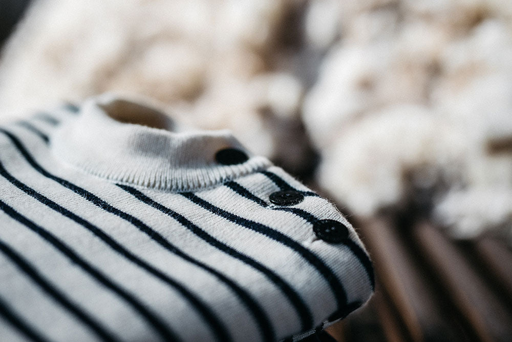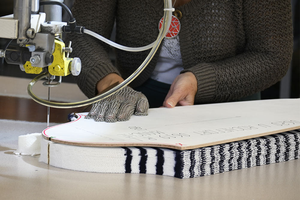 Then comes the moment of cutting along the patterns, then the assembly of the panels. The seamstresses stitch, overlock, and re-mesh the buttoned bands and collar. They also affix the Saint James labels, crest, and logo.